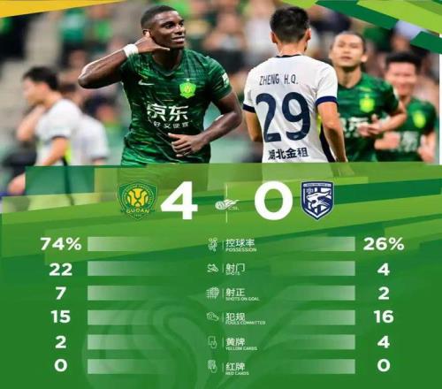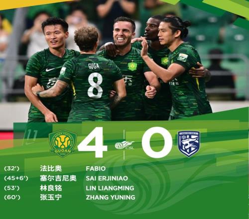 8月25日,在2025华润饮料中超联赛第22轮比赛中,北京国安主场4-0战胜武汉三镇。