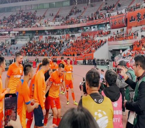 赛后,无论是主教练韩鹏,还是球员们享受着久违的球迷欢呼呐喊,“WE ARE ONE”再度响彻整个大球场。