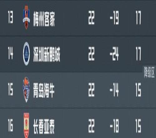 目前长春亚泰与青岛海牛同积15分,距离保级安全区仅差2分。