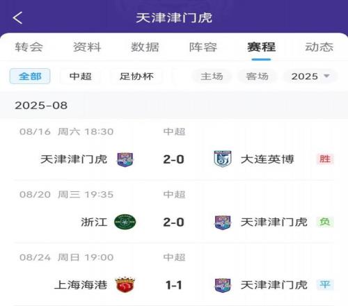 这是津门虎、浙江2支球队9天内分别进行的第3场中超比赛。此前,为保障U22男足备战2026年U23亚洲杯预选赛,中超官方调整了第22轮、第23轮分别一场比赛的时间,其中涉及到的津门虎、浙江两队因此需要在9天内进行3场中超比赛。