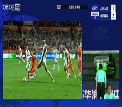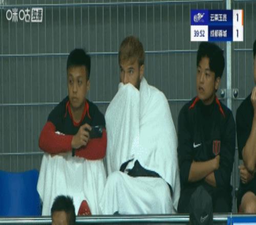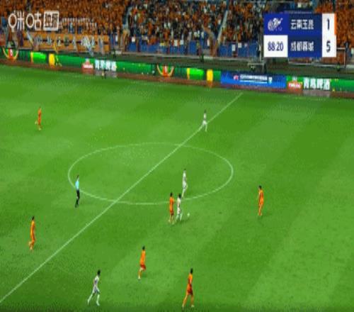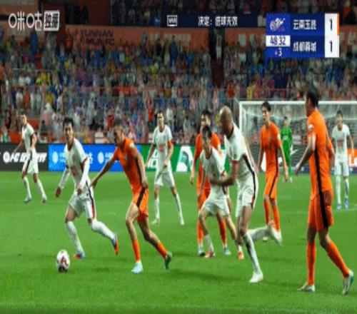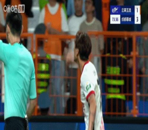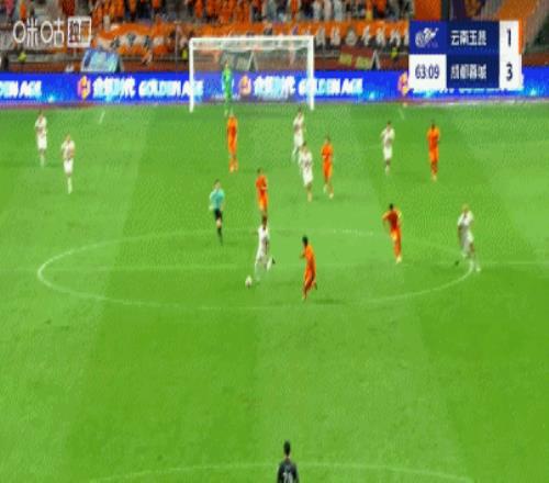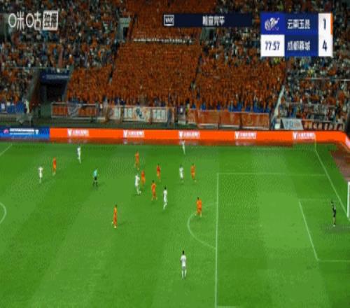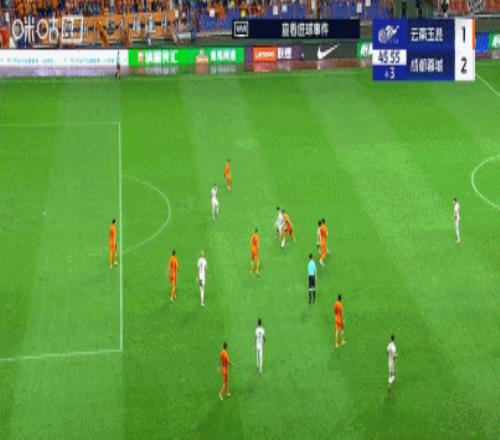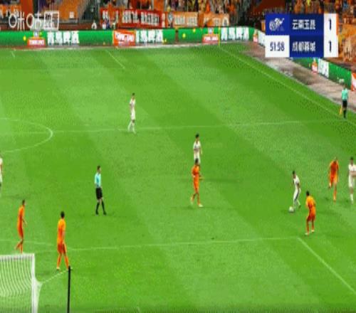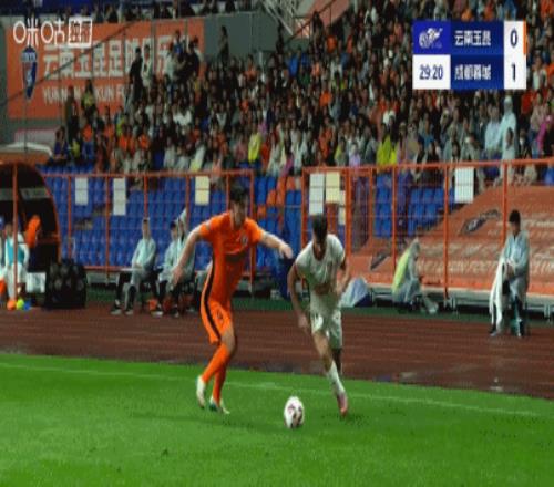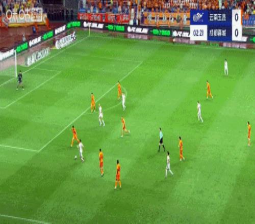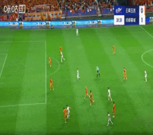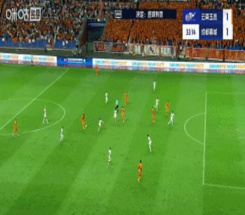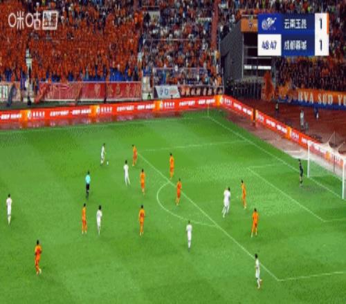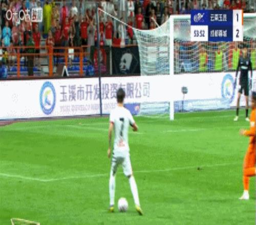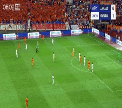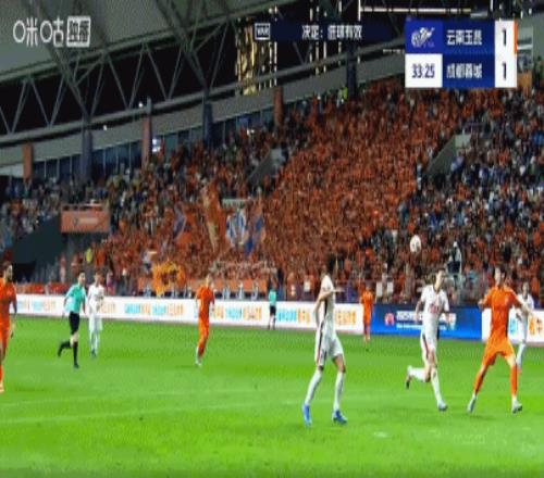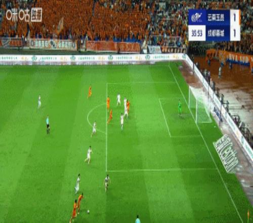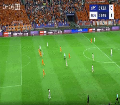第34分钟,侯永永接李松益长传挑射扳平比分,云南1-1成都