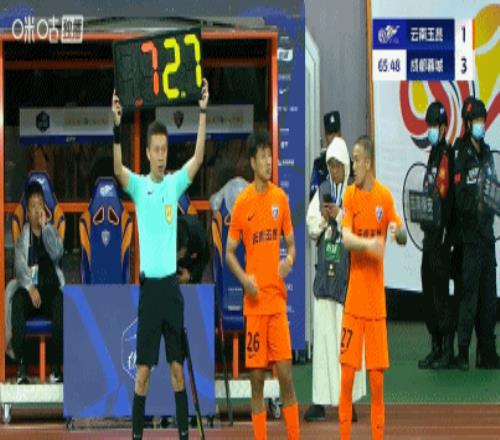 第67分钟,成都换人,杨明洋无法坚持被换下,严鼎皓登场