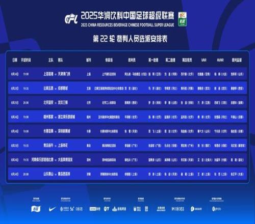 直播吧08月23日报道宣称 中超第22轮裁判出炉,约旦裁判执法海港vs津门虎,VAR杜建鑫。