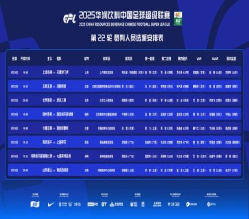 中超官方公布第22轮裁判选派:外籍裁判执法海港vs津门虎