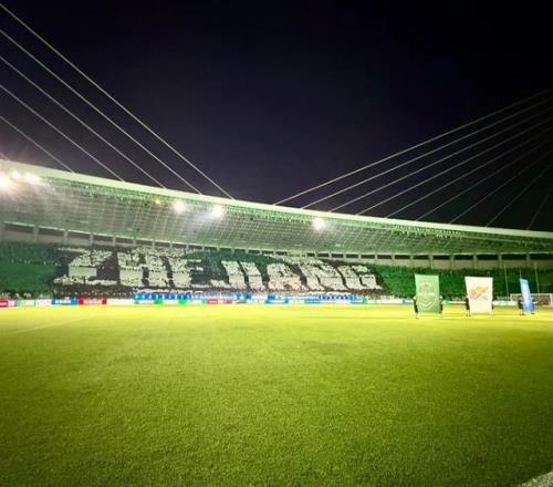 赛前,球场东看台巨大的“ZHE JIANG”字样tifo,瞬间点燃了现场的氛围。这幅凝聚着浙江球迷汗水和心愿的tifo,从比赛一开始就带给球队巨大的支持。