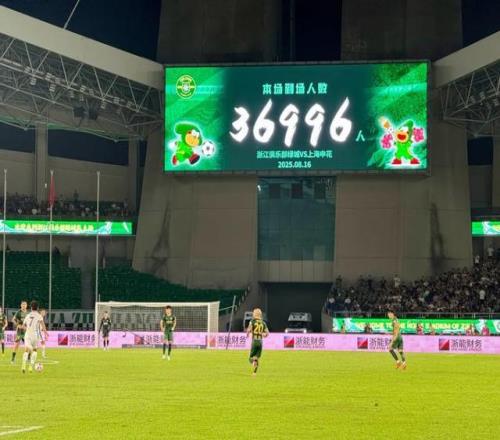 “今晚到场观众人数为,36996人!”当现场广播报出这一数字时,整个黄龙体育中心体育场沸腾了。连续两个主场,两次创造球队中超主场上座纪录。尽管现场比分是0比0,但面对志在夺冠的上海申花,浙江绿城还是打出了一场不错的阻击战。