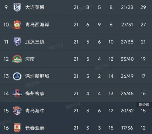 第21轮结束!中超保级6队大混战:武汉三镇都危险了!
