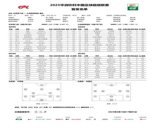 北京时间8月16日18:30,中超第21轮,天津津门虎主场对阵大连英博。赛前首发公布。