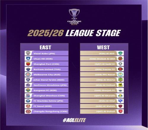 雷速体育8月15日报道宣称 今天15点和17点,25/26赛季亚冠二级联赛和精英联赛抽签仪式将先后在马来西亚吉隆坡进行。上海海港、上海申花、成都蓉城3支中超球队参加亚冠精英联赛,北京国安参加亚冠二级联赛。