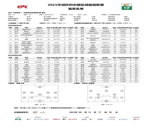 北京时间8月15日19:35,中超第21轮展开争夺,上海海港坐镇主场上汽浦东足球场迎战河南,本场主裁判为万涛,VAR裁判为戴弋戈,赛前双方首发出炉。