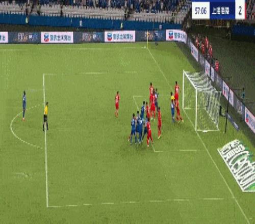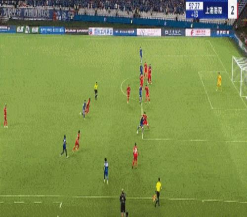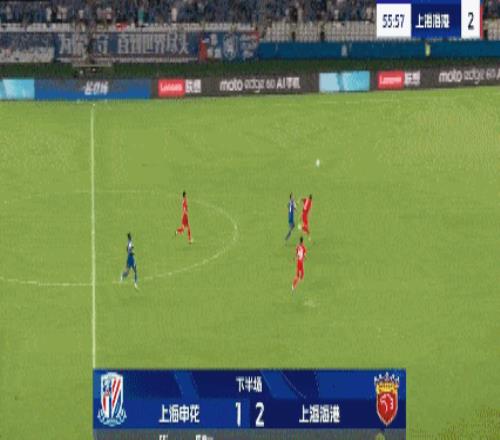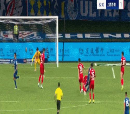 第55分钟,颜骏凌扑球脱手,陈晋一禁区混战扳回一球,申花1-2海港。