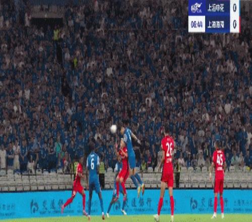 第58分钟,申花角球再造混战,陈晋一弧顶射门打高。
