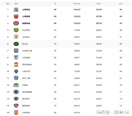 中超积分榜:争冠形势大乱!申花优势消耗殆尽,海牛逃离降级区