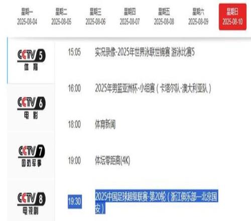 北京时间8月10日晚19点35分,中超联赛第20轮,浙江队将坐镇主场迎战北京国安。央视体育频道CCTV5将进行现场直播!本赛季首回合较量,北京国安主场2-0击败浙江,但浙江俱乐部夏窗引进了罗马尼亚国脚米特里策和巴西前锋亚戈-卡列洛,整体实力升级2.0!主场渴望扳回一城。