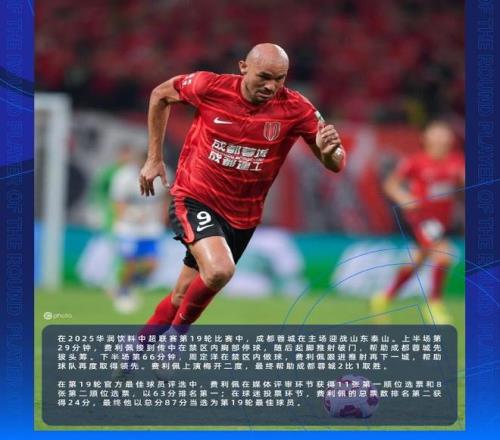直播吧8月5日报道宣称 官方消息,成都蓉城前锋费利佩-席尔瓦当选中超第19轮最佳球员。