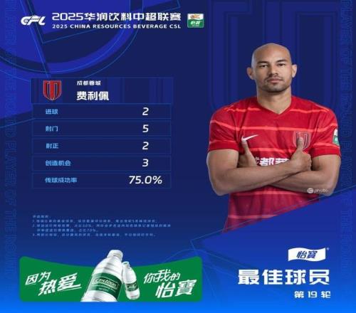 官方:成都蓉城前锋费利佩当选中超第19轮最佳球员