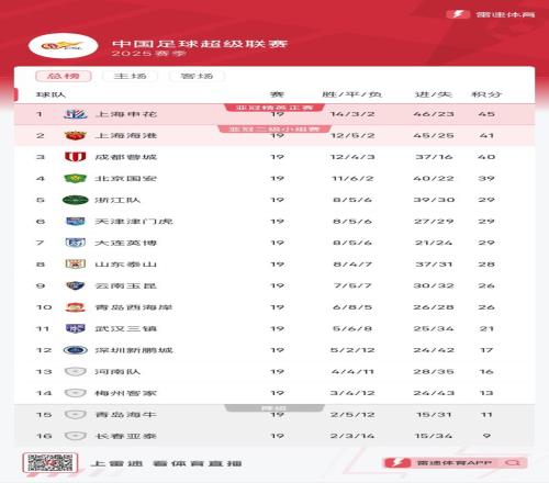 休赛期前,北京国安以16场比赛11胜5平0负积38分的不败战绩高居榜首,但在连续的不胜后,北京国安目前19轮积39分,已被上海申花、上海海港和成都蓉城反超,暂居联赛第四,落后榜首多达6分。