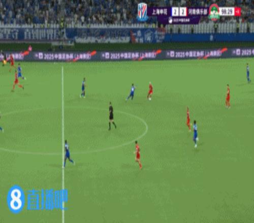 下半场补时8分钟。最终常规时间结束,申花2-2河南进加时。