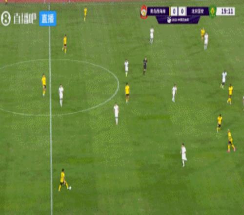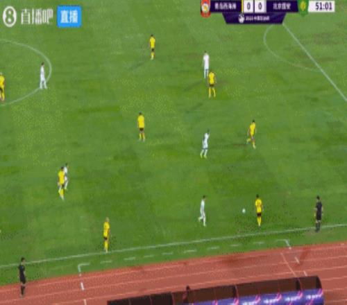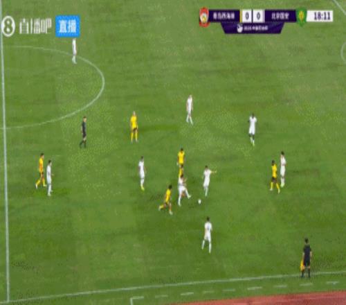 第19分钟,青岛西海岸中线附近的抢断,直塞找右路阿齐兹!阿齐兹杀入禁区内右侧,左脚打门被侯森抱住↓