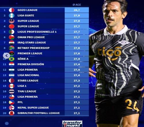 德转列平均年龄最大的联赛:中超27.7岁第四老,马耳他联赛居首