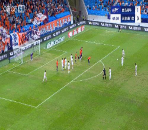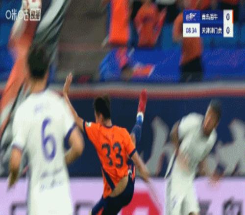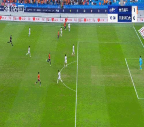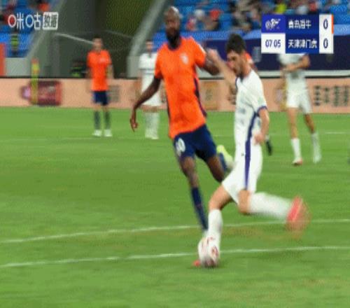 半场青岛海牛10天津津门虎兰克尔泽破门双方9分钟内3度染黄