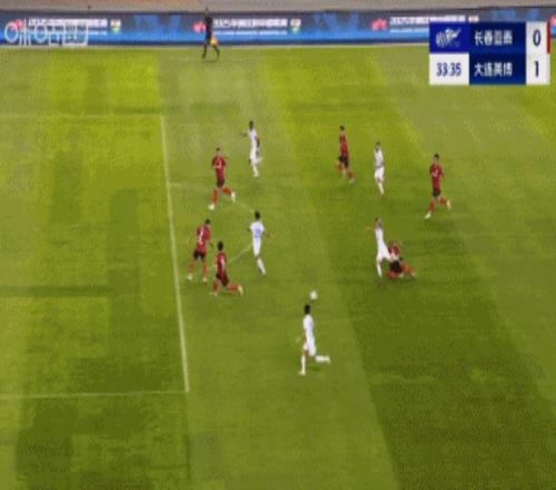 比赛第33分钟,廖锦涛连过两人后分到边路,刘祝润传中助攻,拉布亚德跟进推射破门,场上比分长春亚泰0-1大连英博。