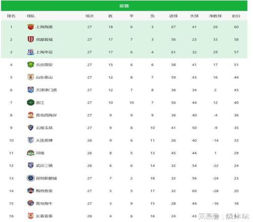 中超积分榜:山东泰山或扮演“争冠判官”,云南玉昆双杀津门虎