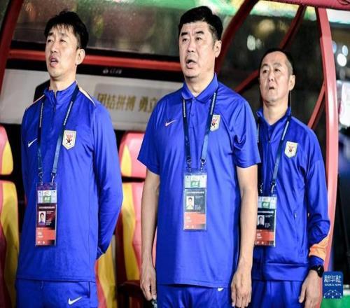 10月18日,山东泰山队代理主教练韩鹏(中)在比赛前。新华社记者 江汉 摄