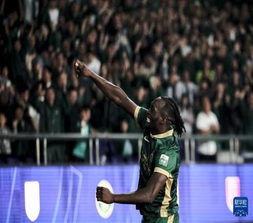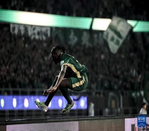 10月18日,浙江俱乐部绿城队球员奥乌苏在进球后庆祝。新华社记者 江汉 摄