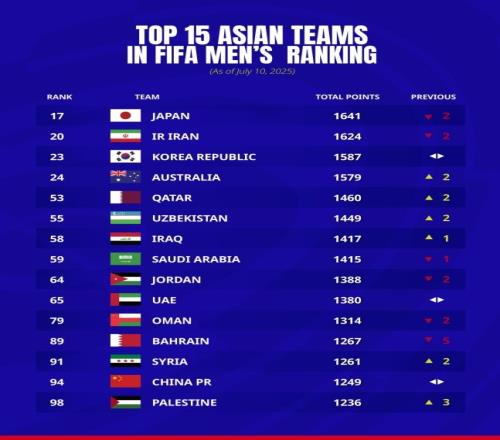目前日本和伊朗依然占据亚足联前二的位置,而第三韩国的身后还有澳大利亚紧追不舍。韩国参加本次东亚杯的积分甚少,接下去还要和美国、墨西哥等强队踢热身赛,澳大利亚则要迎战新西兰。这可能导致韩国亚洲第三的位置不保。