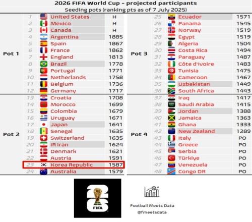 韩媒认为,一旦韩国队掉到三档,将在小组赛面对一档和二档球队的挑战,这将使韩国在世界杯出线层面蒙上阴影。