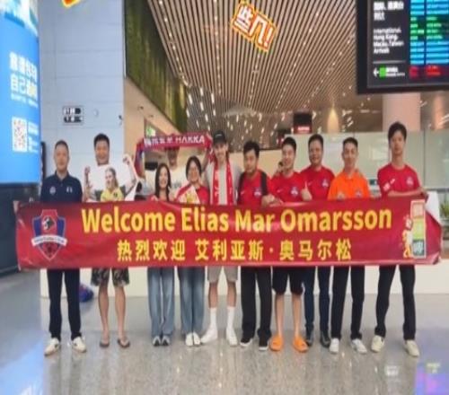 来自冰岛的奥马尔松于昨天一早抵达了广州白云机场,当时早有一些梅州球迷守候在机场,等待着奥马尔松的到来。奥马尔松也一一满足了球迷们的签名合影要求。