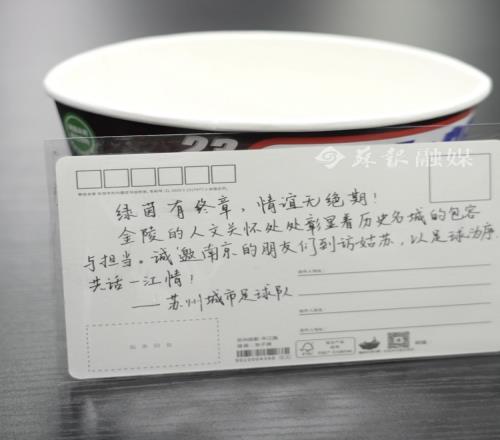 苏媒:苏州队球员赛后打扫干净客队更衣室,留下明信片感谢南京