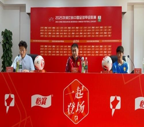 7月4日下午,2025赛季中甲联赛第15轮,大连鲲城主场对阵石家庄功夫的赛前发布会举行,大连鲲城执行主教练赵发庆携队员宁方泽出席。