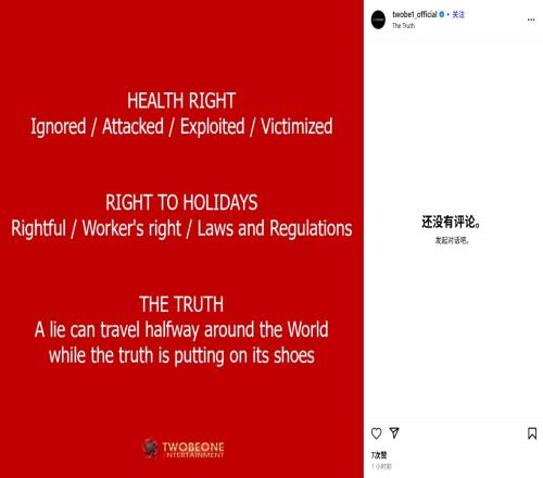 崔康熙的经纪公司发文写道:“健康权,被忽视、被攻击、被剥削、被迫害;休假权,合法、(是)雇员的权利、(是)法律法规;至于真相,当真相还在穿鞋时,谎言已绕地球跑了半圈。”