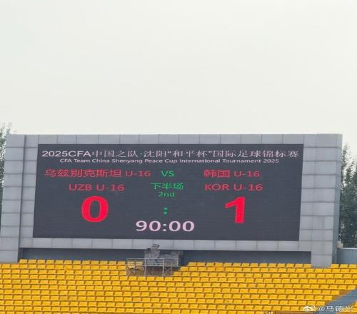 2025年“和平杯”国际青年邀请赛今天揭幕,下午进行的首场比赛,韩国国少1-0击败乌兹别克斯坦,10号具训民上半场兜射破门打入全场比赛唯一进球。