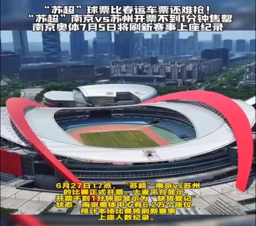 火爆明日苏超南京vs苏州,预计超6万球迷涌入南京奥体&破纪录