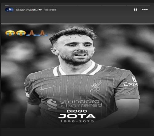 小奥斯卡在社媒晒出了若塔的黑白照片,并配上了“哭泣”和“祈祷”的表情,以表达自己的惋惜和哀思。
