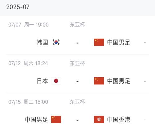 国足首轮对阵韩国队,次轮对阵日本队,末轮对阵中国香港队。