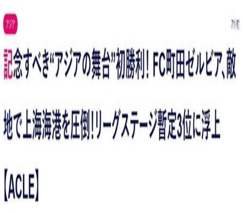如:《值得纪念的“亚洲舞台”首胜!町田泽维亚,客场爆冷击败上海海港,暂居亚冠精英联赛第三》、《町田在亚洲赛场的首胜!相马勇纪的精彩进球帮助球队击败了中国冠军》等等……