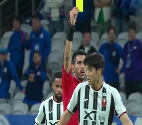 第26分钟,马纳法突破被金珍洙踩踏放倒,裁判向金珍洙出示一张黄牌。