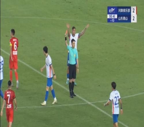 体育资讯06月30日报道宣称 中超第16轮,河南vs山东泰山。比赛第90+6分钟,刚刚替补登场2分钟的彭欣力犯规后暴怒,对主裁判出言不逊,随后被直红罚下!泰山队少打一人!