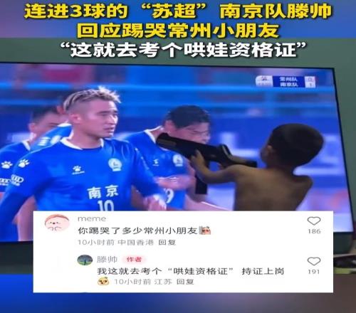 南京队滕帅回应“踢哭”常州小朋友:这就去考个哄娃资格证