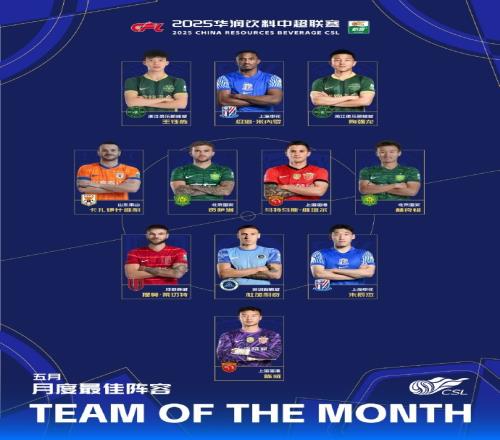 体育资讯6月22日报道宣称 中超联赛官方公布了5月份最佳阵容,采用3-4-3阵型。最佳阵容名单如下: