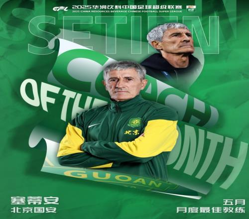 中超官方:国安主帅塞蒂恩当选月度最佳教练,5月率队联赛3胜1平